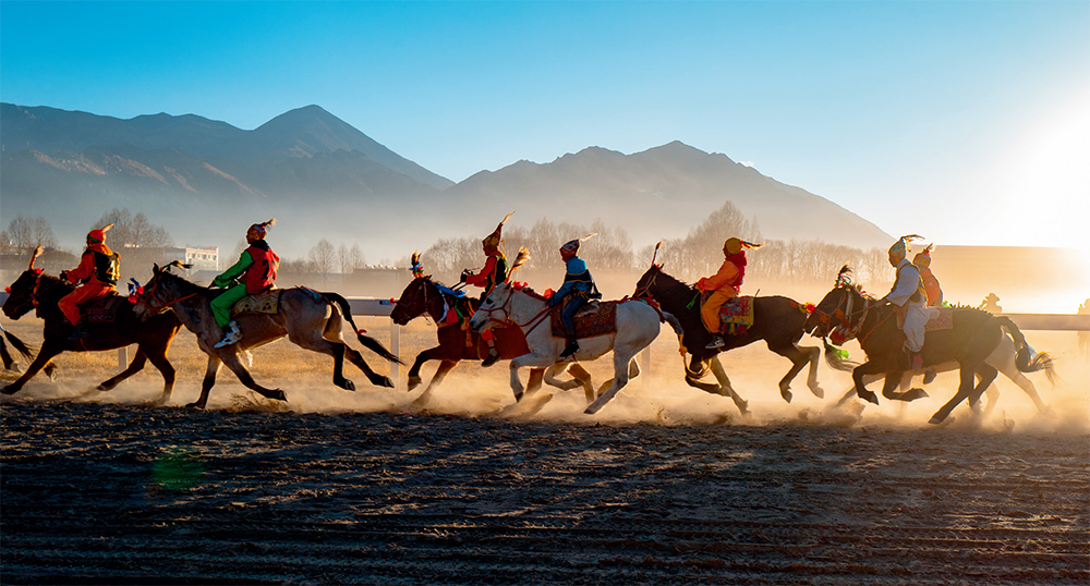 2月7日,騎手在拉薩北郊賽馬場(chǎng)上進(jìn)行民間賽馬活動(dòng)和傳統(tǒng)馬術(shù)表演 普布扎西攝