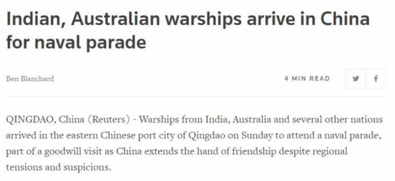 印度駐華使館稱,印度軍艦參加中國人民解放軍海軍閱兵式,是深化印中兩軍關(guān)系的努力之一,符合兩國領(lǐng)導(dǎo)人的戰(zhàn)略指導(dǎo)。預(yù)計本次活動將進(jìn)一步推進(jìn)兩軍增進(jìn)互信和理解的進(jìn)程。