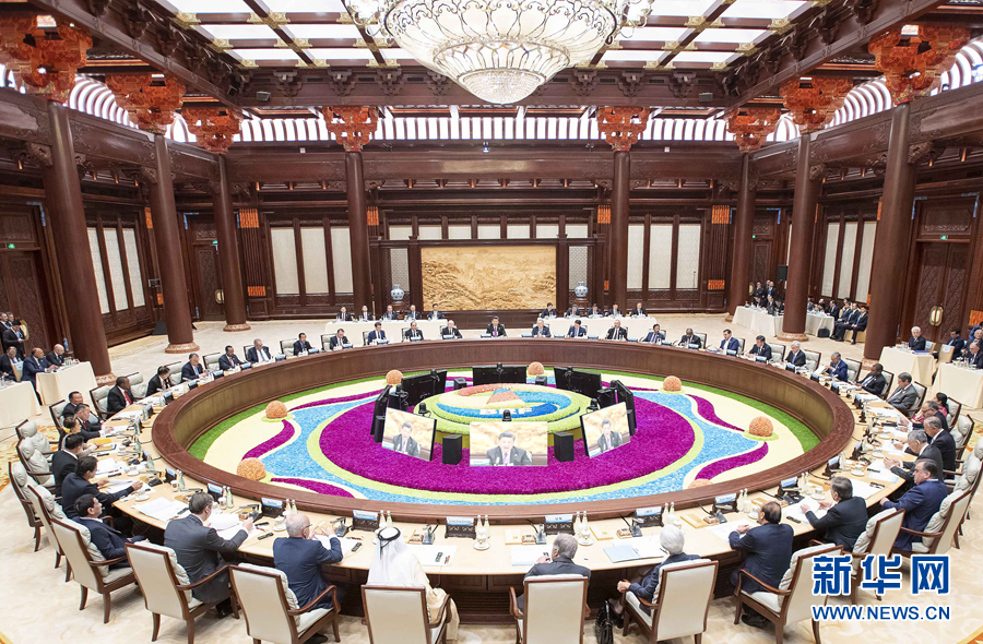 4月27日,第二屆“一帶一路”國際合作高峰論壇在北京雁棲湖國際會(huì)議中心舉行圓桌峰會(huì),國家主席習(xí)近平主持會(huì)議并致開幕辭!⌒氯A社記者李濤 攝