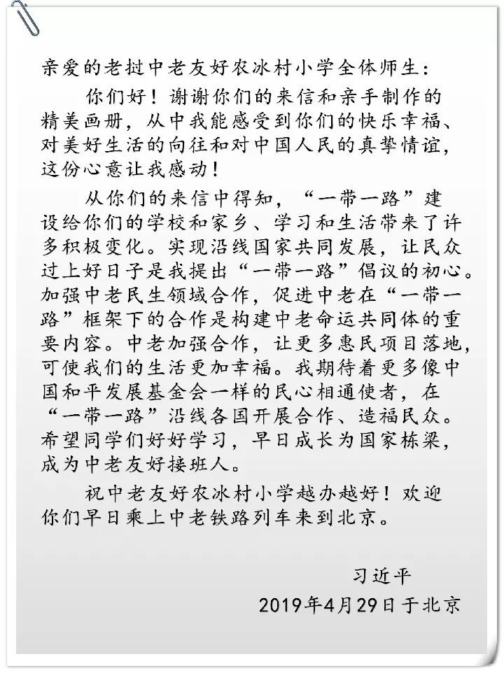 在來信的最后,中老友好農冰村小學師生提及讓他們滿心期待的中老鐵路,希望以后能夠乘坐中老鐵路的列車去北京看看。
