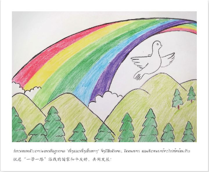 ↑中老友好農冰村小學的學生畫作(中共中央對外聯(lián)絡部提供)