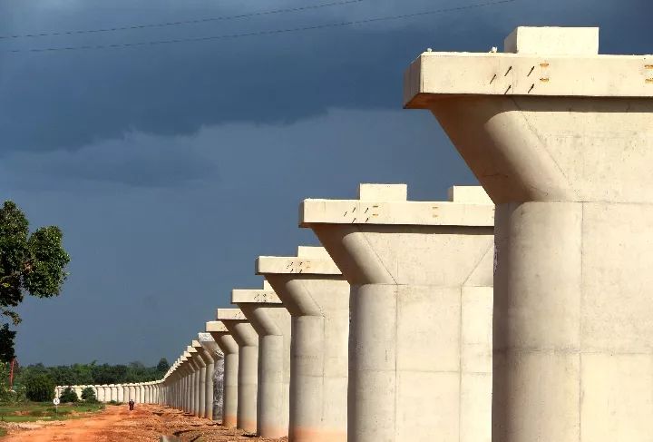 ↑2018年6月14日的老撾萬象楠科內河特大橋橋墩。墩身澆筑完成標志著中老鐵路全線最長橋梁主體工程順利完工。 新華社發(fā)
