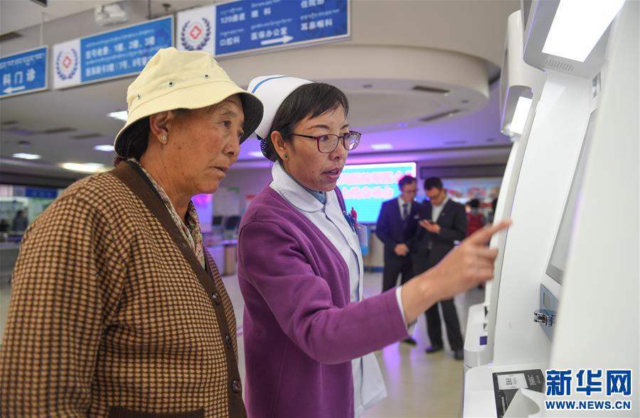 5月26日,西藏自治區(qū)人民醫(yī)院工作人員在為患者講解多功能自助機的功能。新華社記者 張汝鋒 攝