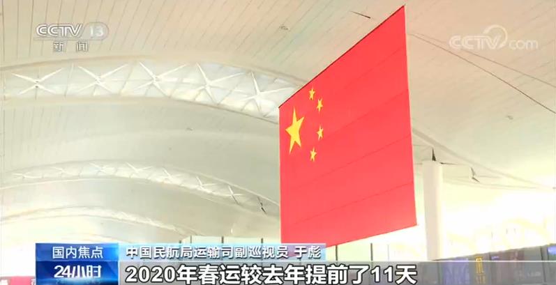 中國民航局運輸司司長 于彪:一是節(jié)前各類旅客出行疊加,客流高峰突出。與2019年春運相比,2020年春運較去年提前了11天,春運前期將迎來“務工流”、“學生流”“探親流”疊加的旅客出行高峰,部分高峰日容易出現(xiàn)客票緊張的情況。