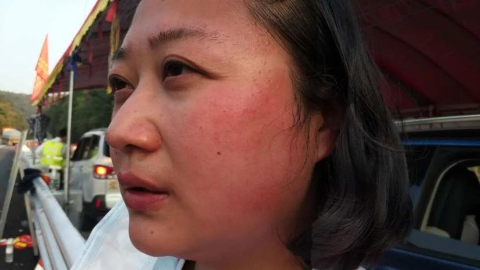 江顏君,是一個既愛美又喜歡跳舞的姑娘。在云梧高速防疫一線連續(xù)工作了七八個小時,腰累、腿麻、喉嚨干、脖子僵硬,毒辣的太陽更是將她原來白皙粉嫩的臉蛋嚴(yán)重曬傷,導(dǎo)致紅腫過敏,甚至脫了層皮。臉上一出汗,頭發(fā)就容易粘到臉上,用手輕輕地撩開,劃過臉,都讓她覺得刺痛。