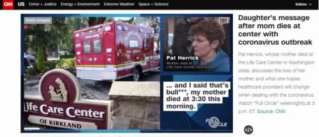 華盛頓州“柯克蘭市生命護(hù)理中心”(Life Care Center of Kirkland)成為令人擔(dān)憂的美國疫情中心區(qū)域。多家美媒近日講述了這樣一件令人揪心的事:名為帕特·赫里克的女子在接到柯克蘭市生命護(hù)理中心稱其母親去世的消息后不久,仍然接到電話宣稱其母親“體溫正常,一切都好”。
