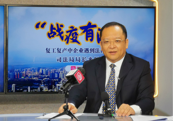 深圳市司法局局長蔣溪林做客“戰(zhàn)疫有法”直播活動(dòng)(深圳市司法局供圖)