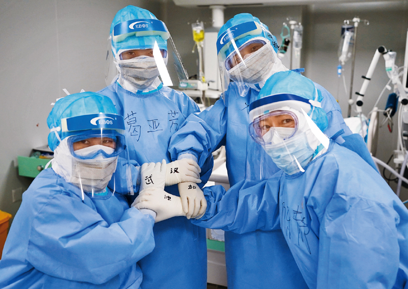 在抗擊新冠肺炎疫情的最前沿“紅區(qū)”,白衣天使們打贏了一場(chǎng)場(chǎng)與病毒的“生死戰(zhàn)”。圖為2020年3月20日,武漢火神山醫(yī)院重癥醫(yī)學(xué)一科的護(hù)士們合影為武漢加油。 新華社記者 王毓國(guó)/攝