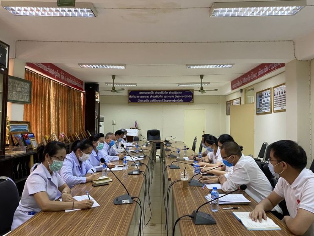 2020年4月2日,在老撾首都萬象150醫(yī)院,中國抗疫醫(yī)療專家組(右)與老方醫(yī)務(wù)人員交流。(新華社發(fā))