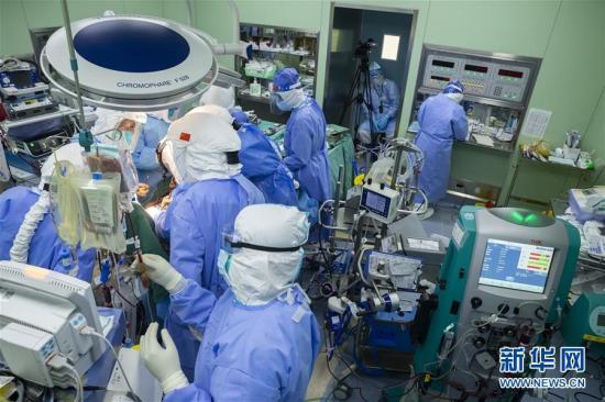 4月24日,患者在接受雙肺移植手術(shù)。4月24日,由中華醫(yī)學(xué)會(huì)胸心外科副主任委員、武漢協(xié)和醫(yī)院器官移植中心主任董念國教授與江蘇省肺移植中心主任陳靜瑜教授帶領(lǐng)的專家團(tuán)隊(duì),在武漢協(xié)和醫(yī)院西院區(qū)為一名新冠肺炎核酸轉(zhuǎn)陰、不可逆肺纖維化呼吸衰竭的患者成功實(shí)施雙肺移植手術(shù)。經(jīng)過五個(gè)半小時(shí)的手術(shù),來自山東腦死亡患者愛心捐獻(xiàn)的雙肺重新在54歲的患者胸腔內(nèi)重啟,再次打通呼吸通道。經(jīng)過14天的術(shù)后管理及康復(fù)治療,該患者生命得以重生。據(jù)了解,該患者是目前全國使用呼吸機(jī)和術(shù)前ECMO(人工肺膜)輔助治療時(shí)間最長的新冠肺炎患者,達(dá)到73天,近日成功撤除ECMO。