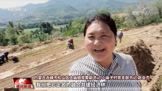 內蒙古赤峰市松山區(qū)大廟鎮(zhèn)黨委副書記 小廟子村黨支部書記 趙會杰:現(xiàn)在大家看到的是我們的大廟鎮(zhèn)小廟村的經(jīng)濟林果樹園區(qū),這是在今年春季我們全鎮(zhèn)19個行政村的黨組織和黨員干部群眾義務為我們村建起的經(jīng)濟林果樹園區(qū),我們把它定名為融合共建經(jīng)濟林。
