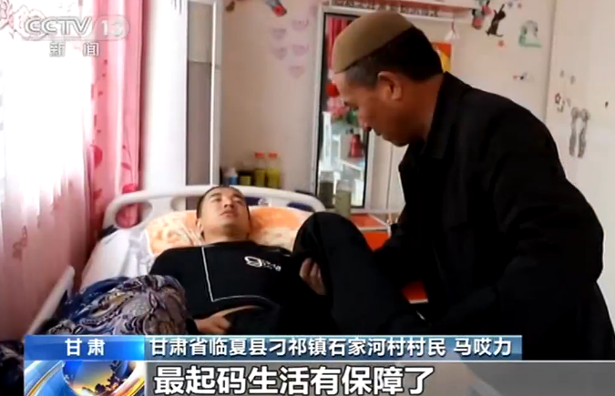 甘肅省臨夏縣刁祁鎮(zhèn)石家河村村民 馬哎力:這樣最起碼生活有保障了,我也一直在醫(yī)院做康復(fù)。