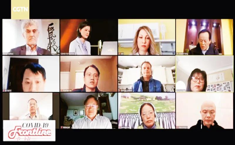 △總臺(tái)節(jié)目《全球疫情會(huì)診室》通過(guò)視頻連線(xiàn)向各國(guó)專(zhuān)家介紹中國(guó)一線(xiàn)醫(yī)護(hù)人員抗疫寶貴經(jīng)驗(yàn)。(中央廣播電視總臺(tái) 供圖)