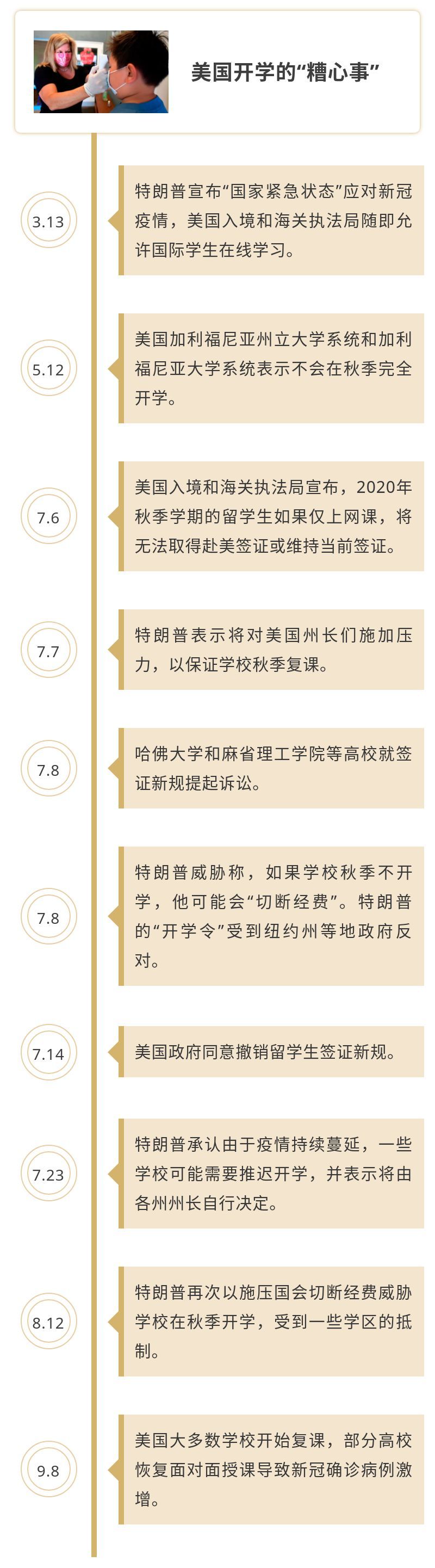 不過(guò),美國(guó)總統(tǒng)特朗普一直把返校上課視作重啟美國(guó)經(jīng)濟(jì)的優(yōu)先要?jiǎng)?wù)之一。美聯(lián)社報(bào)道,特朗普認(rèn)為學(xué)生重返課堂家長(zhǎng)才能重返工作崗位,所有學(xué)校應(yīng)該“積極做好開(kāi)學(xué)準(zhǔn)備”,只要必要措施到位,許多學(xué)區(qū)就能安全重開(kāi)。