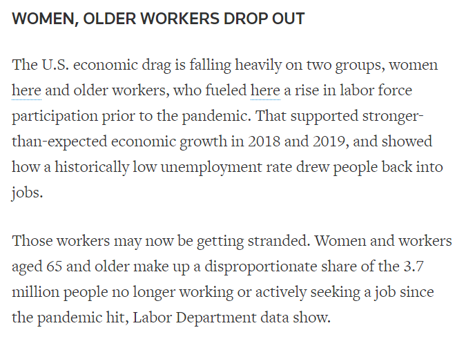 △路透社報道,大批美國女性已經(jīng)退出勞動力市場