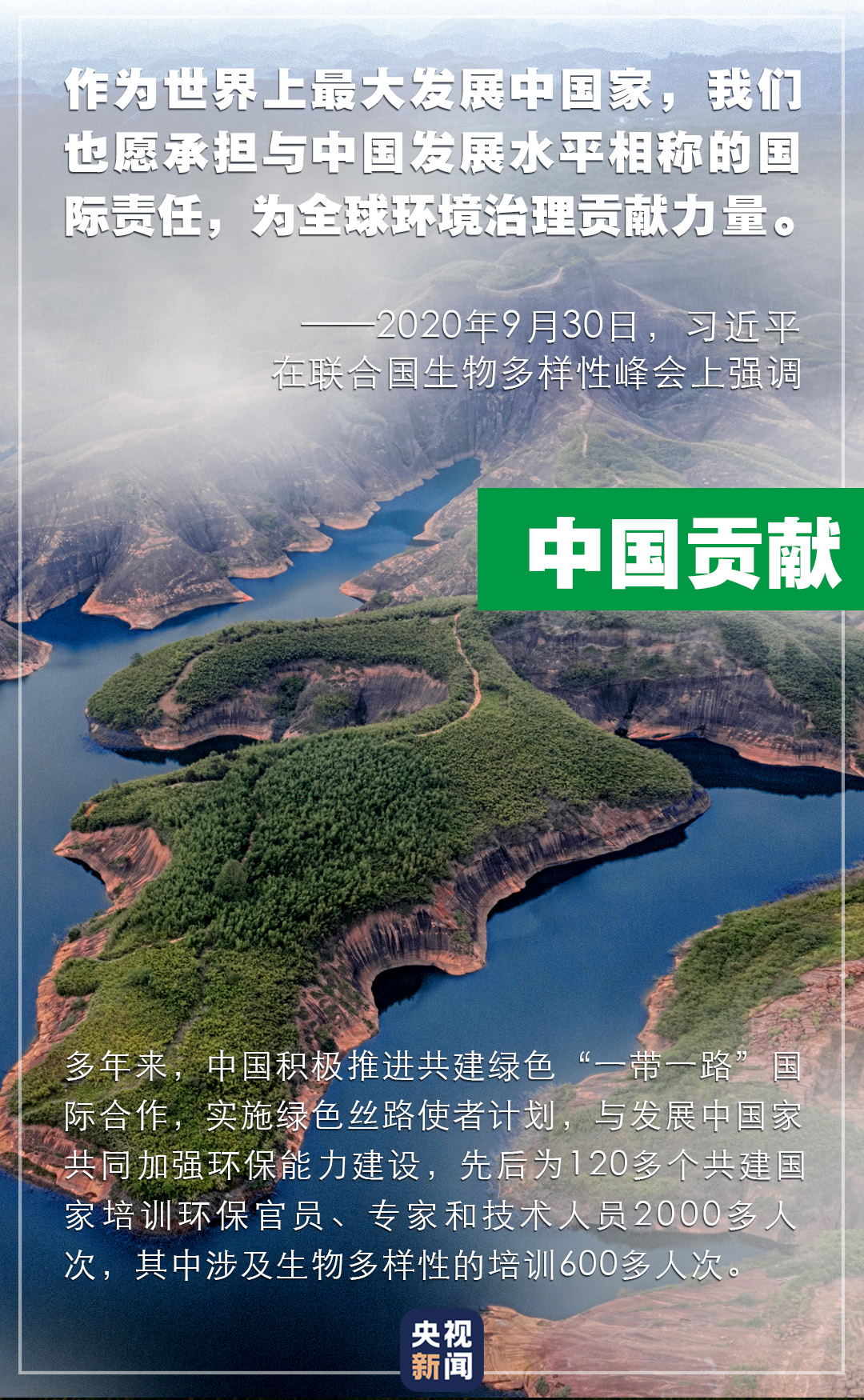黨的十八大以來,以習(xí)近平同志為核心的黨中央始終引領(lǐng)生態(tài)文明建設(shè),不斷開拓“美麗中國”新境界。在峰會上,習(xí)近平闡釋了中方在生物多樣性治理和生態(tài)文明建設(shè)的具體做法,分享了中方經(jīng)驗(yàn),對中國在全球環(huán)境治理中將貢獻(xiàn)的力量作出鄭重承諾。