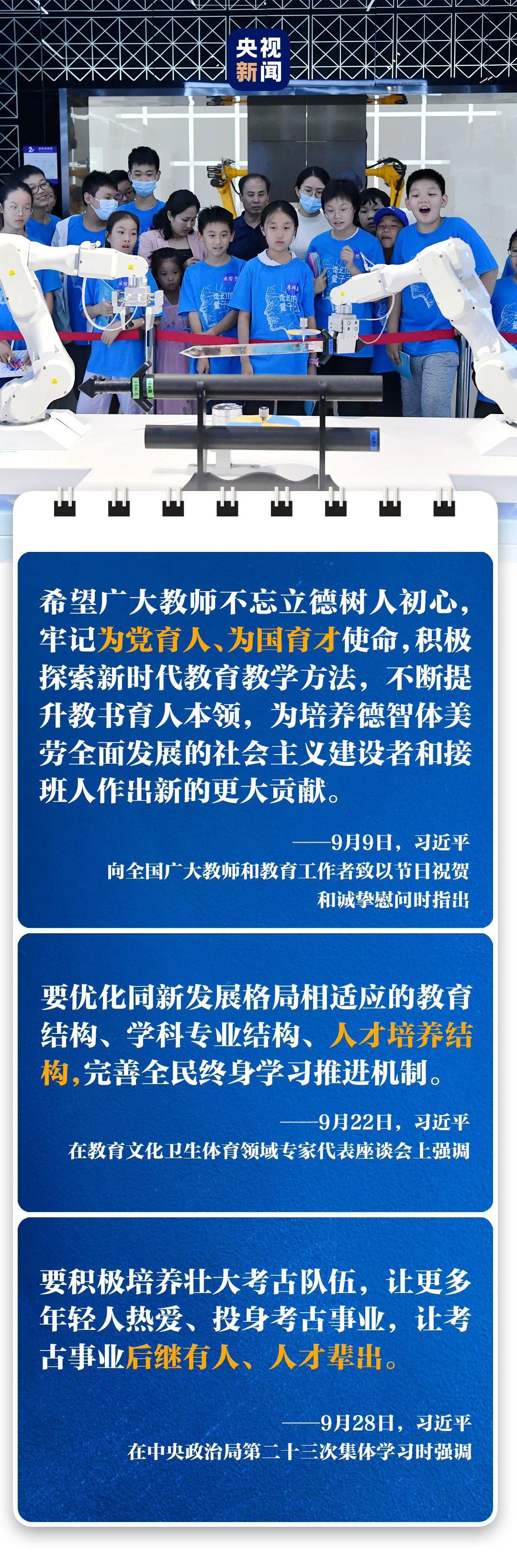 習(xí)近平十分重視教育這一“國(guó)之大計(jì)、黨之大計(jì)”。9月11日,在和科學(xué)家座談時(shí),總書記再次強(qiáng)調(diào),“要把教育擺在更加重要位置”。11天后,在與教育文化衛(wèi)生體育領(lǐng)域?qū)<掖碜剷r(shí),習(xí)近平指出:“我們的基礎(chǔ)教育還是比較扎實(shí)的,都是實(shí)打?qū)嵉,我們?chuàng)造了那么多奇跡,還是靠我們的教育基礎(chǔ)!