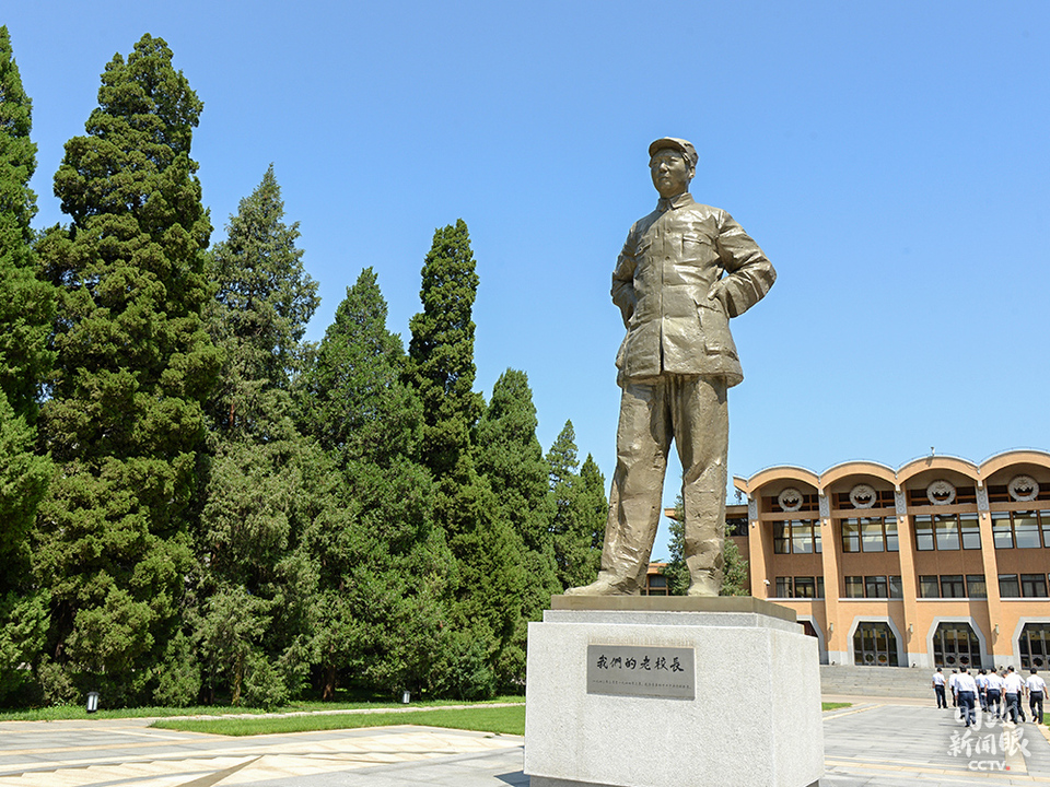 △矗立在禮堂前廣場(chǎng)的毛澤東全身雕像:《我們的老校長(zhǎng)》