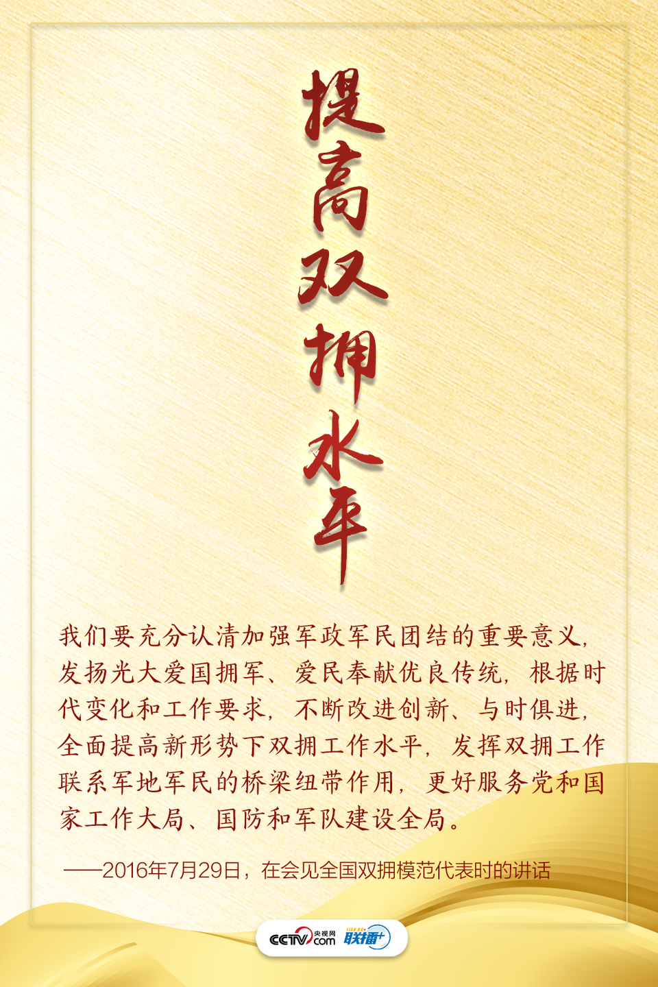 “難得舉城作一慶,愛我人民愛我軍!避姁勖,民擁軍,最偉大的力量是同心合力。央視網(wǎng)《聯(lián)播+》為您梳理總書記講話,一起感受“軍地合力,軍民同心”匯聚起的磅礴力量。