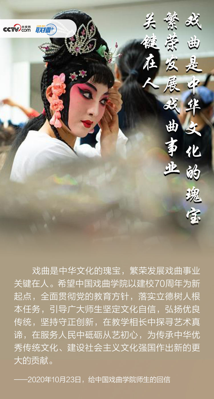聯(lián)播+2020年10月23日,習(xí)近平總書記給中國戲曲學(xué)院師生回信時(shí)強(qiáng)調(diào),中華優(yōu)秀傳統(tǒng)文化不僅是歷史上中華民族戰(zhàn)勝種種艱難險(xiǎn)阻而薪火相傳的偉大精神瑰寶,也是實(shí)現(xiàn)中華民族偉大復(fù)興中國夢的重要精神支撐。
