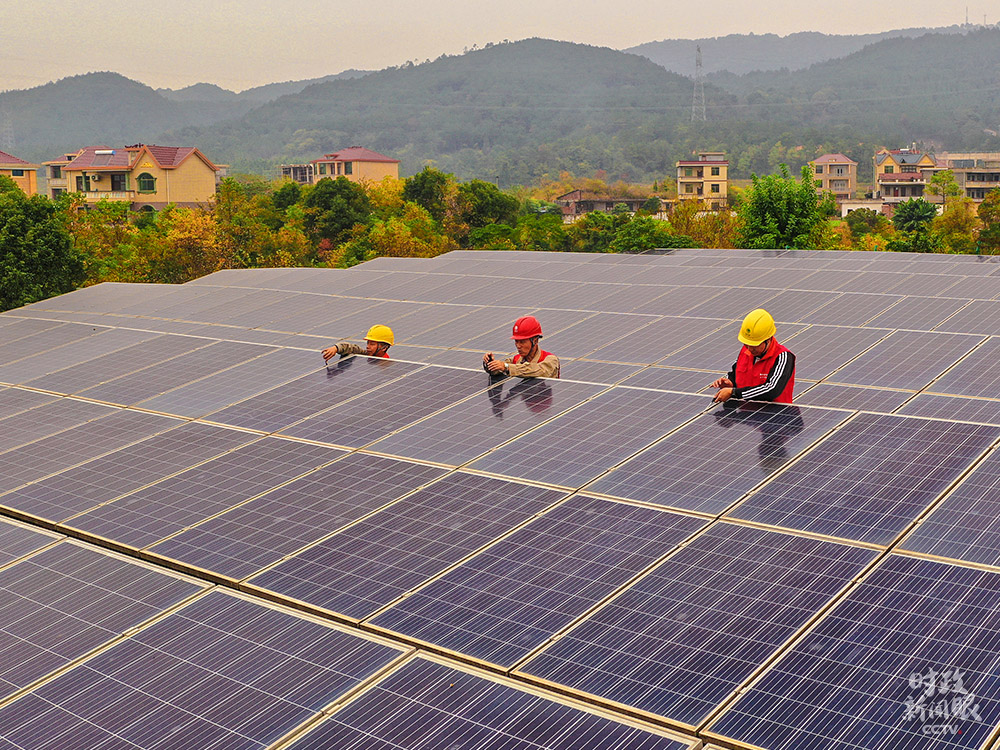 △江西吉安黃崗村,供電公司工人正在檢修“光伏+取暖”設備,保障村民溫暖過冬。