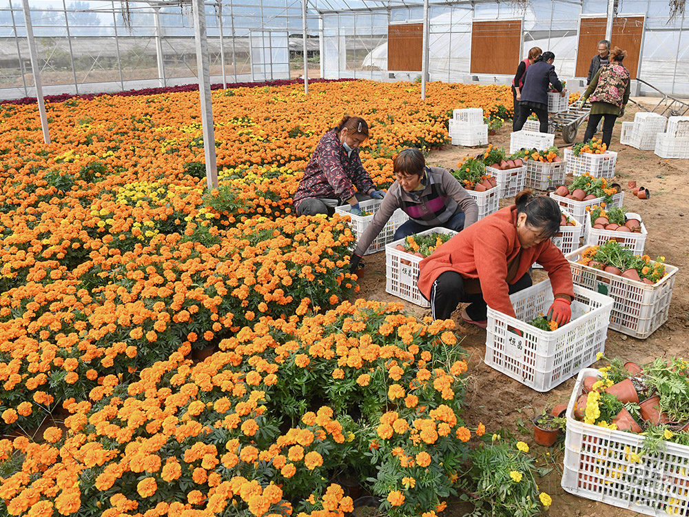 △山東棗莊市山亭區(qū)因地制宜發(fā)展花卉培育,帶動貧困村民多渠道增收。