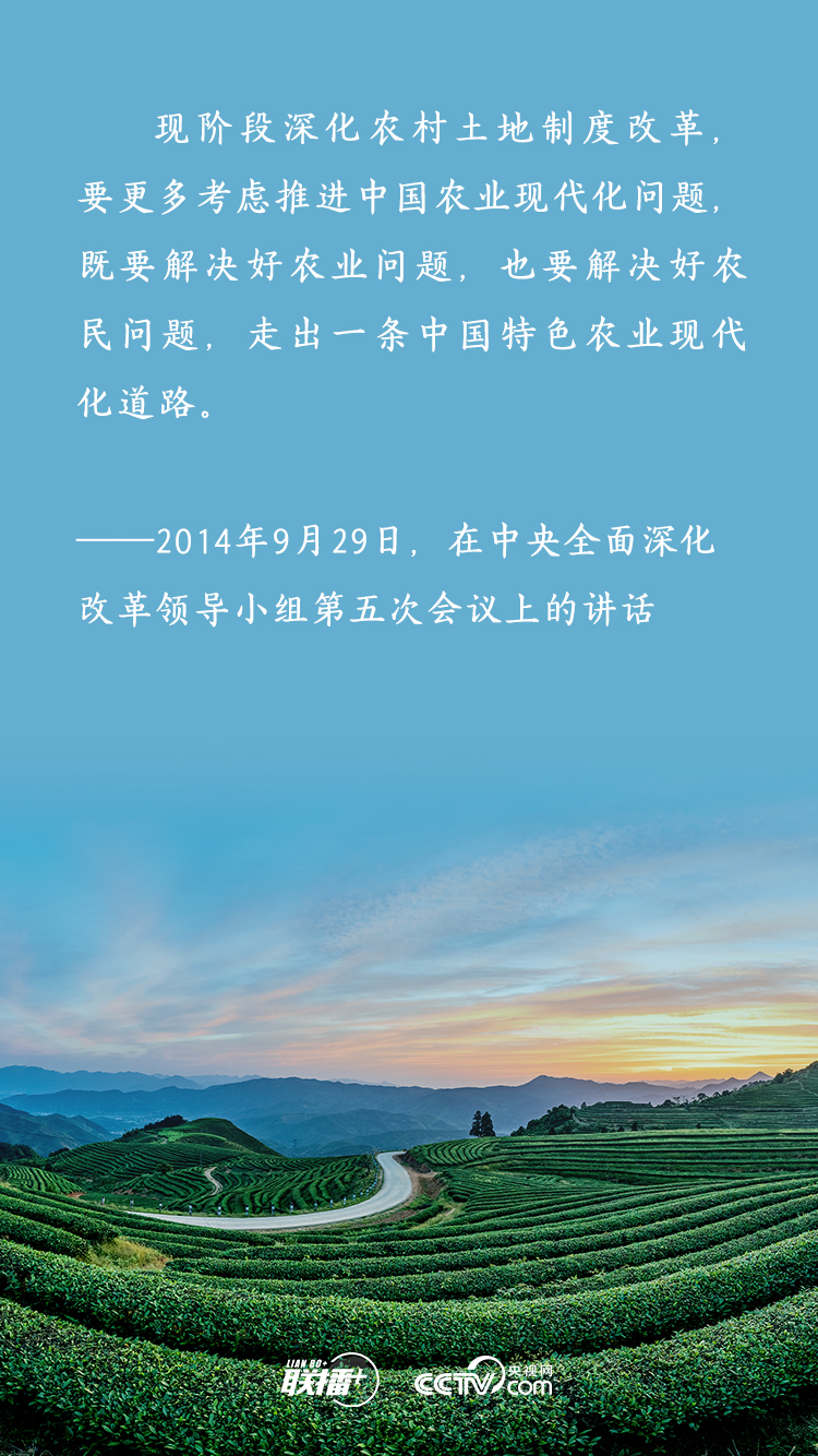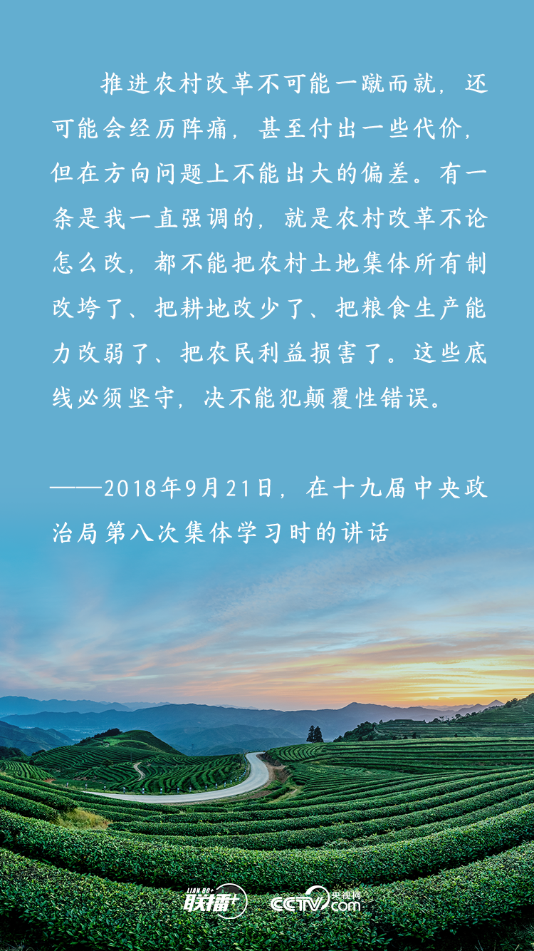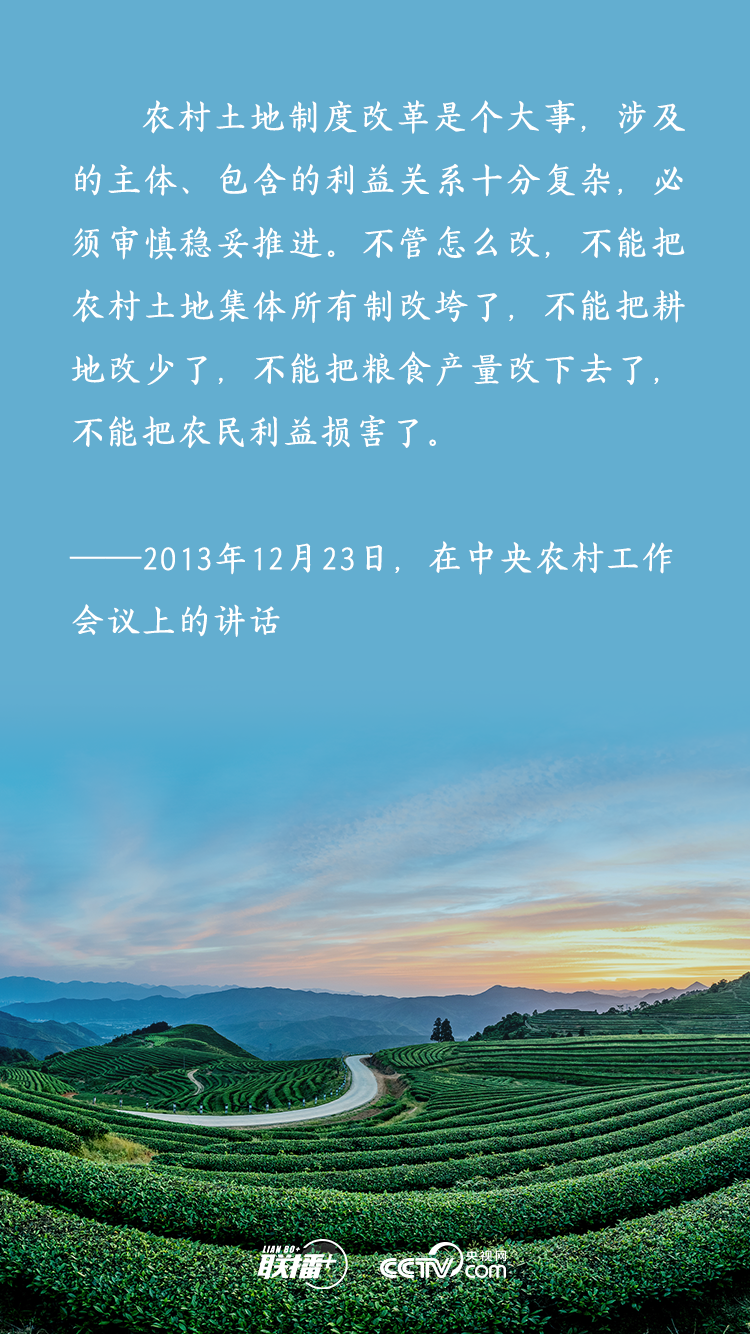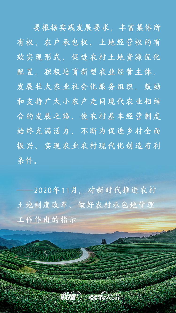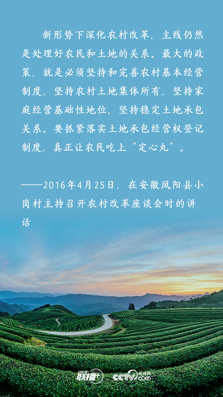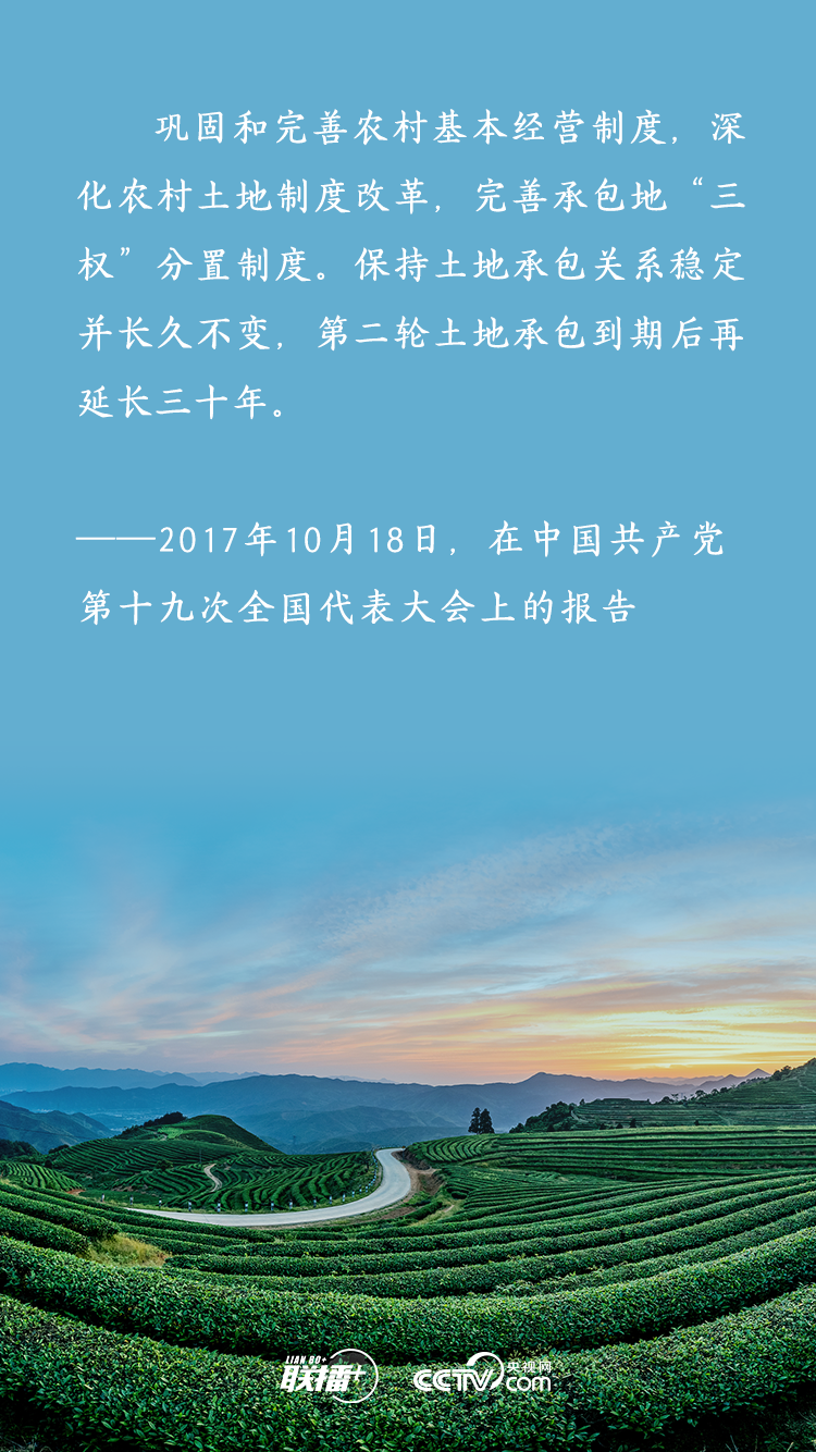 農(nóng)業(yè)農(nóng)村農(nóng)民問(wèn)題是關(guān)系國(guó)計(jì)民生的根本性問(wèn)題,農(nóng)村土地延包事關(guān)千家萬(wàn)戶農(nóng)民切身利益,事關(guān)廣大農(nóng)村地區(qū)穩(wěn)定發(fā)展大計(jì)。黨的十八大以來(lái),習(xí)近平總書(shū)記多次深入基層實(shí)地調(diào)研,召開(kāi)多個(gè)重要會(huì)議,既從大處著眼,整體布局、謀定而動(dòng),又從小處入手,順勢(shì)而為、層層推進(jìn),為新時(shí)代推進(jìn)農(nóng)村土地制度改革、做好農(nóng)村承包地管理工作擘畫(huà)發(fā)展路徑。央視網(wǎng)《聯(lián)播+》特梳理,與您一起學(xué)習(xí)。