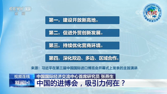 在新冠肺炎疫情全球蔓延、世界經(jīng)濟(jì)持續(xù)低迷的背景下,第三屆中國國際進(jìn)口博覽會(huì)今晚在上海開幕。新朋友、老朋友共赴“東方之約”,當(dāng)中國開放的大門越來越大,攜手共進(jìn)、合作共贏,進(jìn)博會(huì)這個(gè)平臺(tái)又將怎樣發(fā)揮作用?《新聞1+1》今日連線中國國際經(jīng)濟(jì)交流中心首席研究員張燕生,共同關(guān)注:中國的進(jìn)博會(huì),吸引力何在?