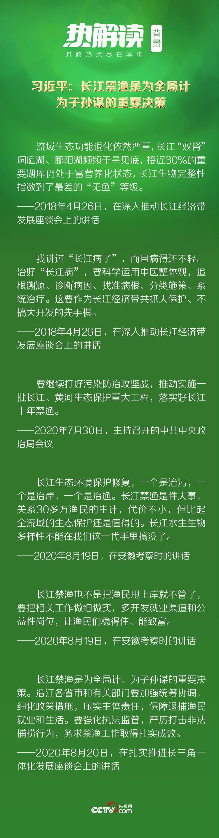 在2018年召開的深入推動(dòng)長(zhǎng)江經(jīng)濟(jì)帶發(fā)展座談會(huì)上,習(xí)近平總書記再次表達(dá)“長(zhǎng)江病了,而且病得還不輕”的憂慮,并指出“長(zhǎng)江生物完整性指數(shù)到了最差的‘無(wú)魚’等級(jí)”,要求“科學(xué)運(yùn)用中醫(yī)整體觀,追根溯源、診斷病因、找準(zhǔn)病根、分類施策、系統(tǒng)治療!