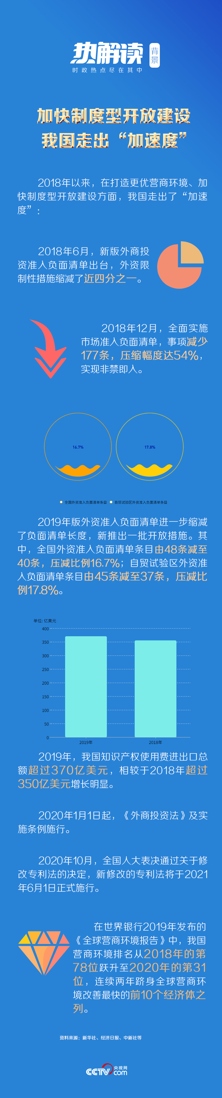 聚焦投資、貿(mào)易、金融、事中事后監(jiān)管等領(lǐng)域,浦東率先構(gòu)建與國(guó)際通行規(guī)則接軌的制度體系,形成了外商投資負(fù)面清單、國(guó)際貿(mào)易“單一窗口”等一批基礎(chǔ)性和核心制度創(chuàng)新——328項(xiàng)制度創(chuàng)新成果復(fù)制推廣到全國(guó);外商投資負(fù)面清單,從2013版的190條減少到2020版的30條;目前上?诎100%的貨物申報(bào)、全部的船舶申報(bào)和出口退稅業(yè)務(wù)都已通過“單一窗口”辦理……