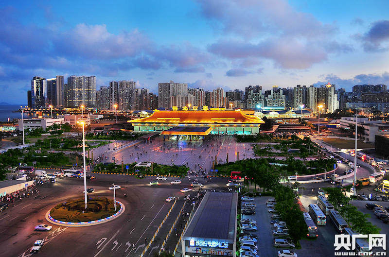夜幕下的拱北口岸