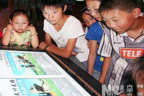 8月31日,克什克騰世界地質(zhì)公園博物館的多媒體展示臺(tái)吸引了一些小朋友的目光。