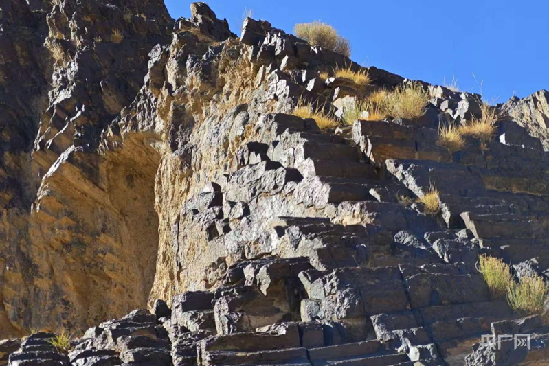 位于都蘭縣的火山巖柱狀節(jié)理群(央廣網(wǎng)發(fā) 韓志亮 攝)