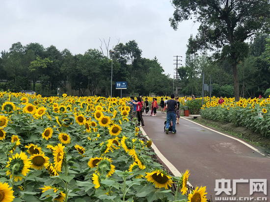 央廣網(wǎng)成都6月27日消息(邱櫟藝)6月下旬,成都天府芙蓉園向日葵花海進入大面積盛花期,近40000平方米向日葵花海向陽而生,競相綻放,吸引了不少市民、攝影愛好者前往拍照打卡。據(jù)悉,6月中旬至7月下旬是向日葵花海的最佳觀賞期。