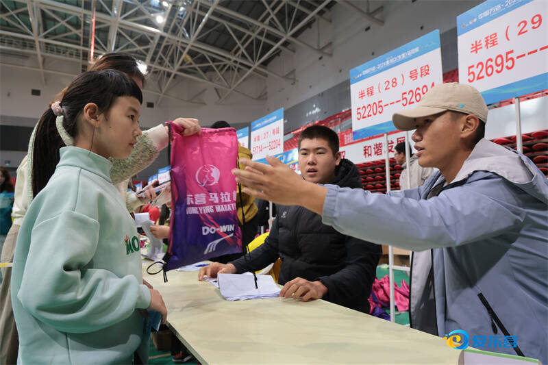 賽前領(lǐng)取物資。記者 田雨 攝