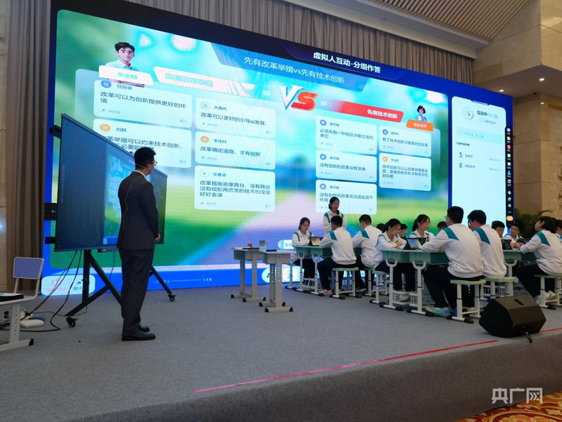 隨后一場(chǎng)“先有技術(shù)創(chuàng)新還是先有改革舉措”的辯論更是燃動(dòng)全場(chǎng),學(xué)生們的觀點(diǎn)實(shí)時(shí)同步到大屏幕上,正反方思路清晰呈現(xiàn),思維碰撞的火花看得見(jiàn)、摸得著。