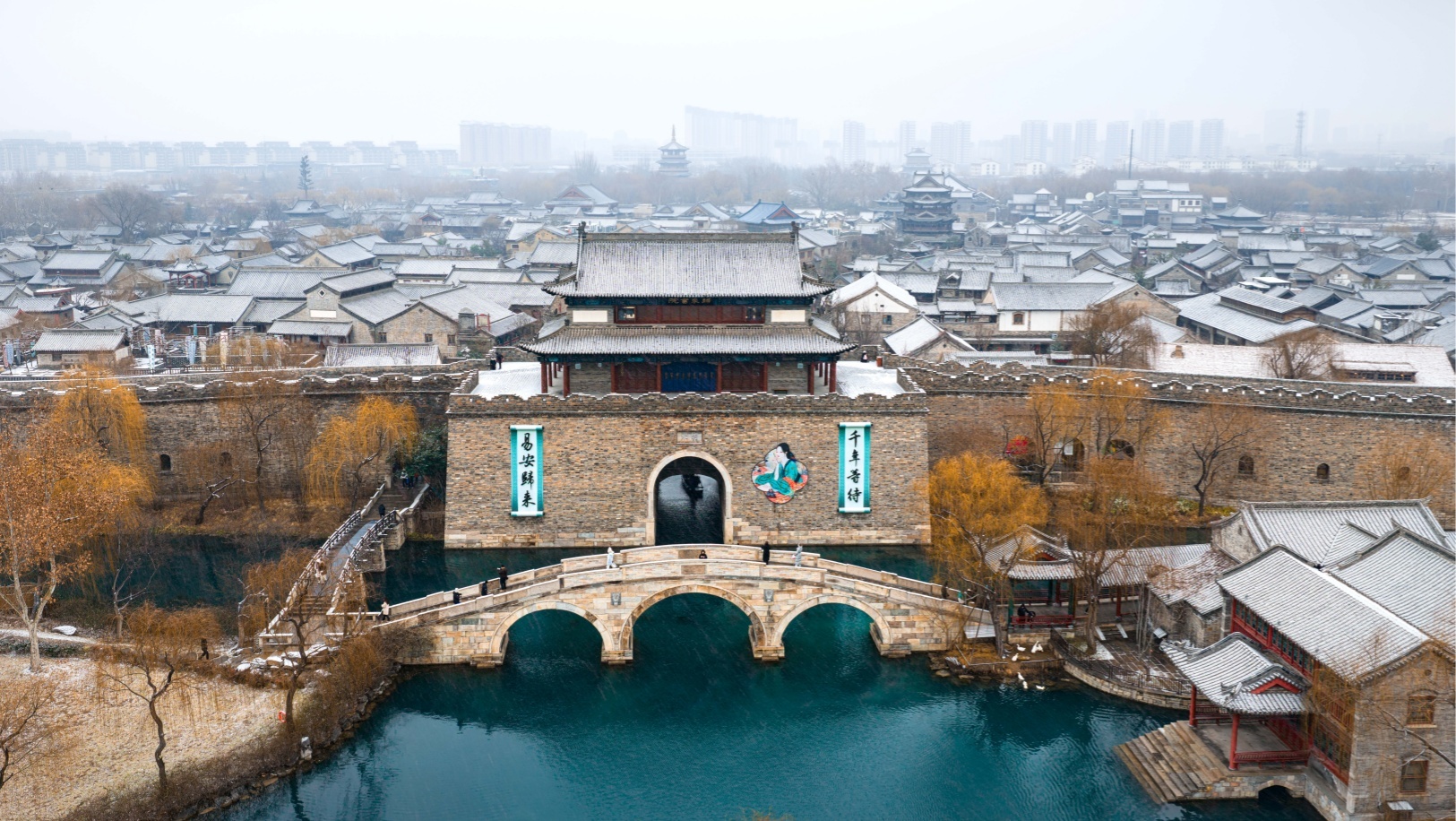 降雪讓古城泉、城、巷一體化的布局特色更加彰顯,也讓古城“家家泉水、戶戶垂楊”的個性更加鮮明。