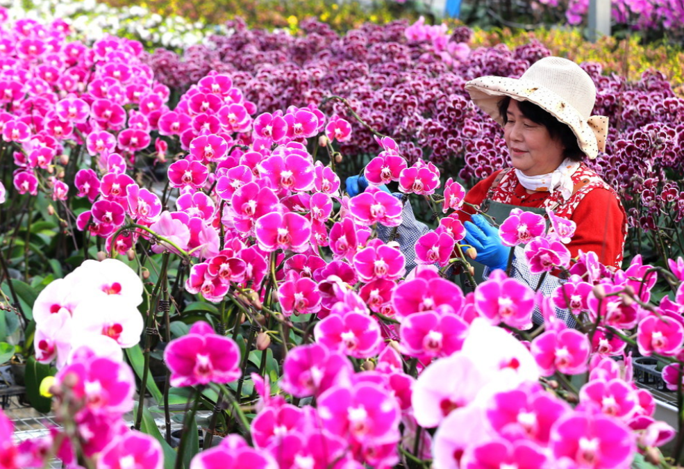 春節(jié)臨近,青島市即墨區(qū)靈山花卉文化產(chǎn)業(yè)園的年宵花迎來生產(chǎn)銷售旺季,花農(nóng)們進行管護、修剪、整形和包裝作業(yè),供應節(jié)日市場。