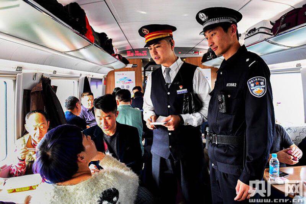 車到濰坊站。從濰坊到下一站即墨北要運行52分鐘,這段時間也是規(guī)定的工作人員吃飯時間。10:45,列車開出濰坊站,陳科與乘警一起按照作業(yè)程序查驗全列的危險品,回到餐車時,已經11:05。他拿出昨天從家里帶來的飯菜,準備吃飯!瓣愜囬L,四車廂一名旅客身份證和車票找不到了,您過來看一下!睂χv機里,響起乘務員焦急的聲音。陳科把打開的飯菜放在桌上,從九車廂趕到四車廂,旅客正焦急地嘀咕:上車的時候還驗過車票和身份證,怎么這會兒就沒了?陳科問旅客去過什么地方,旅客說上車后就在這睡覺,哪里也沒去。陳科不緊不慢地聽完,請旁邊的旅客讓開,先是趴下用手機上的手電筒照了照座椅下面,沒找到,又把坐椅上面的坐墊掀了起來,然后淡定地跟旅客說,在這兒呢。見到車票,周圍的旅客都笑了。