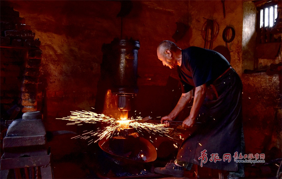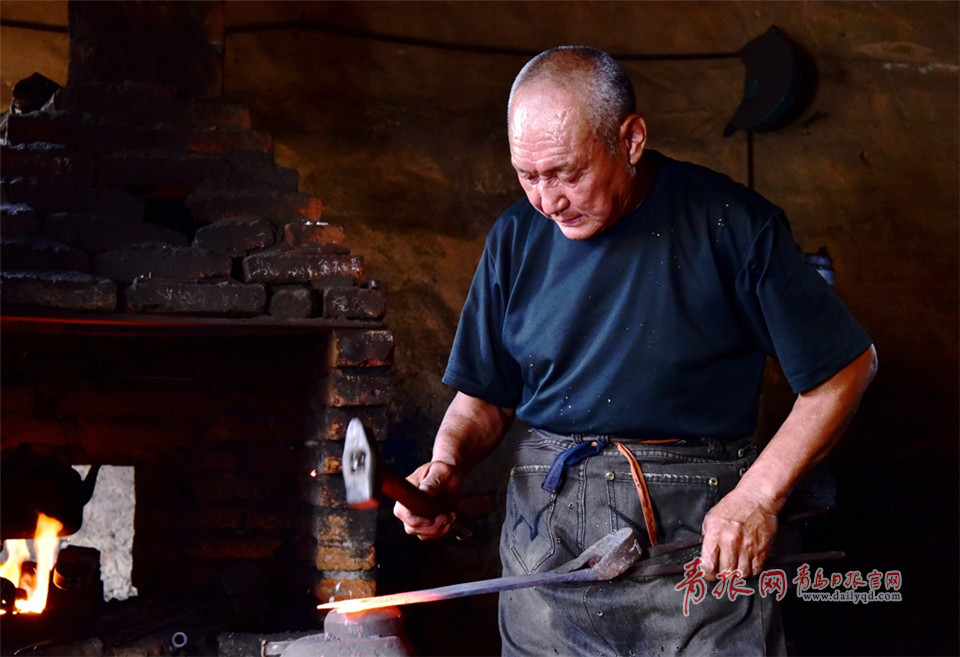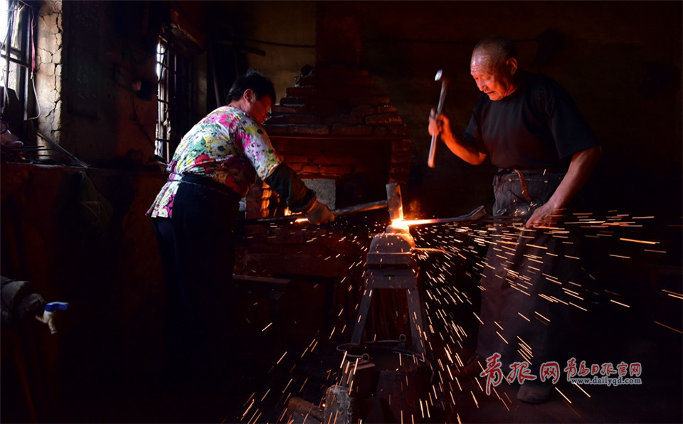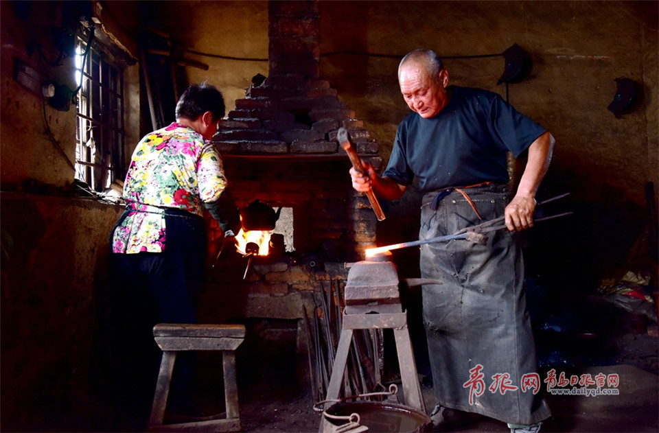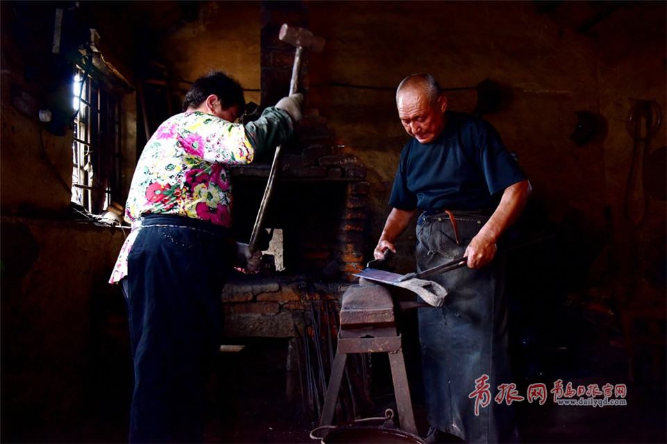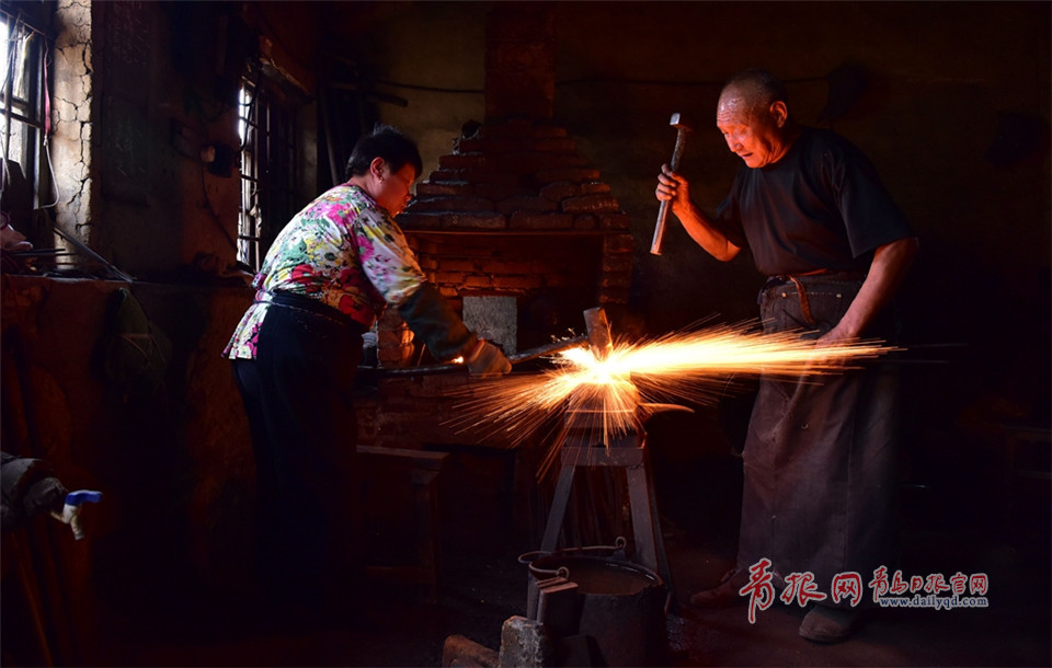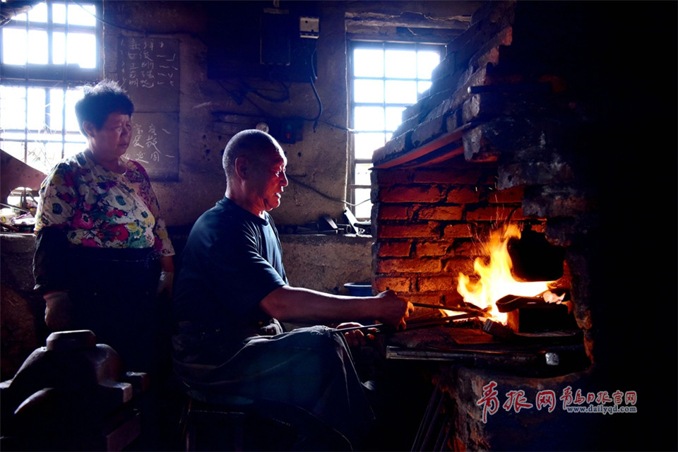 吳師傅生活在即墨北王村里,是一位老鐵匠。每當農(nóng)忙季節(jié),老伴、兒子都會作為助手幫助他一起打鐵。