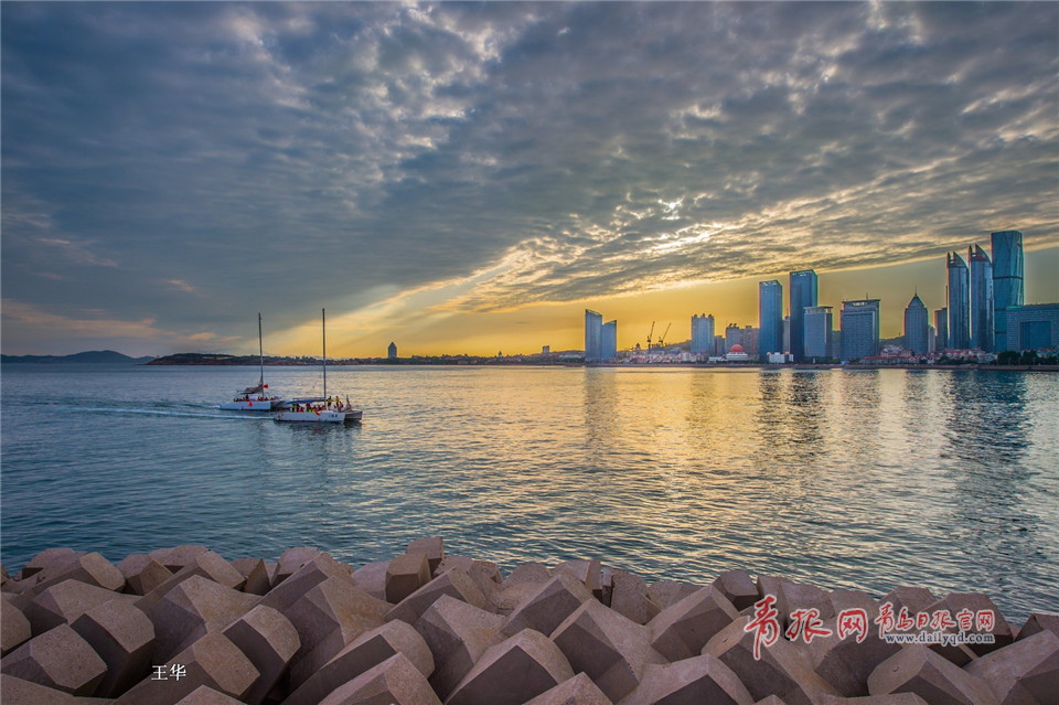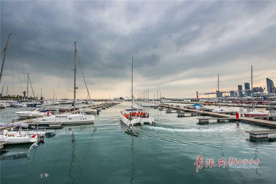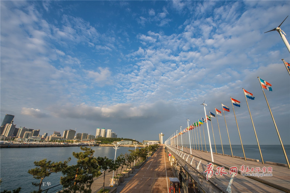 進入仲夏的青島,風(fēng)和日麗,氣候宜人。廣角鏡頭里的青島奧帆中心,藍天白云,帆船點點,美景如畫。
