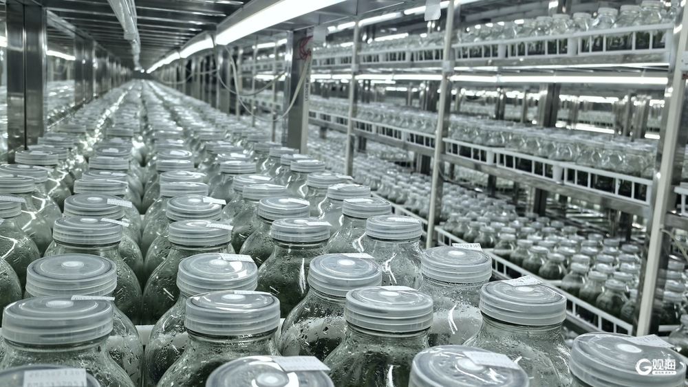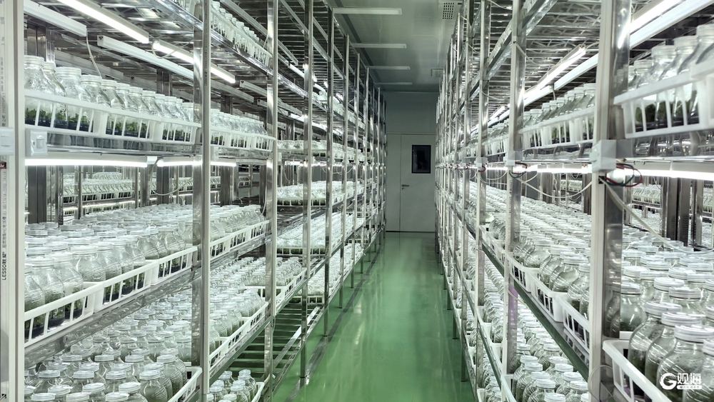培養(yǎng)罐中分批次存放著不同階段的蝴蝶蘭幼苗。