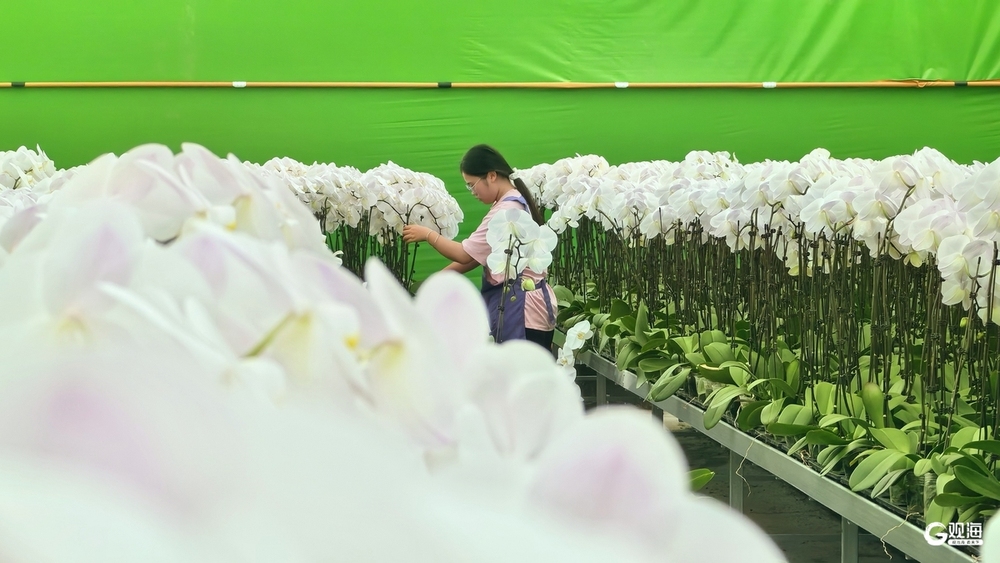 近日,觀海新聞?dòng)浾咦哌M(jìn)平度市舊店鎮(zhèn)萬匯蝴蝶蘭產(chǎn)業(yè)園的智能溫室內(nèi),看到成片雪白花瓣如振翅欲飛的蝴蝶,工人們正麻利地將鮮切花分揀裝箱。該產(chǎn)業(yè)園迎來銷售高峰期,一批批A級(jí)白色蝴蝶蘭鮮切花將從這里發(fā)出。(青島日?qǐng)?bào)/觀海新聞?dòng)浾? 黃光麗 | 責(zé)任編輯 周曉)