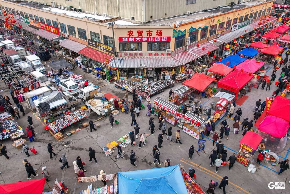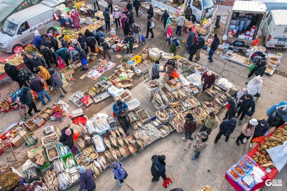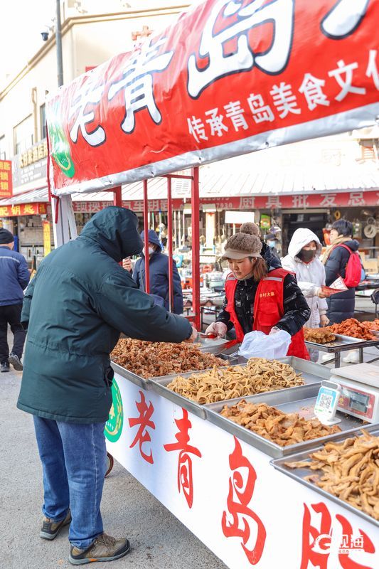 人們?cè)谏綎|省青島市李滄區(qū)李村大集選購(gòu)年貨。
