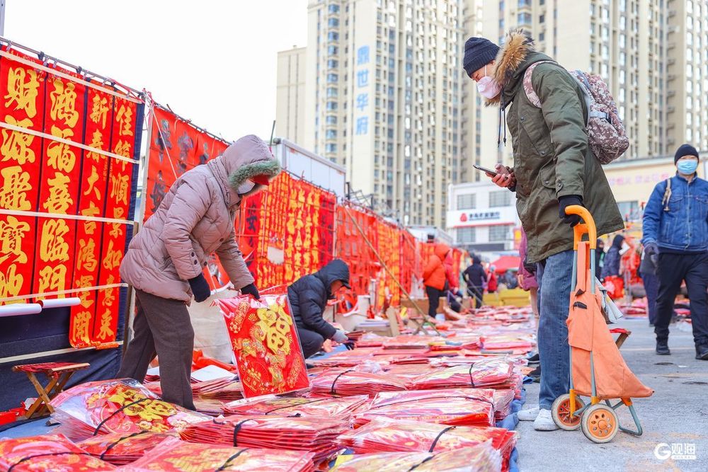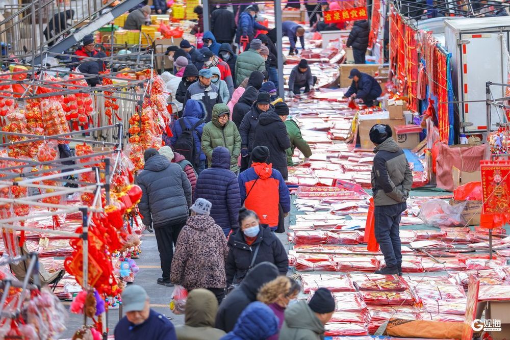 人們?cè)谏綎|省青島市李滄區(qū)李村大集選購(gòu)新年飾品。