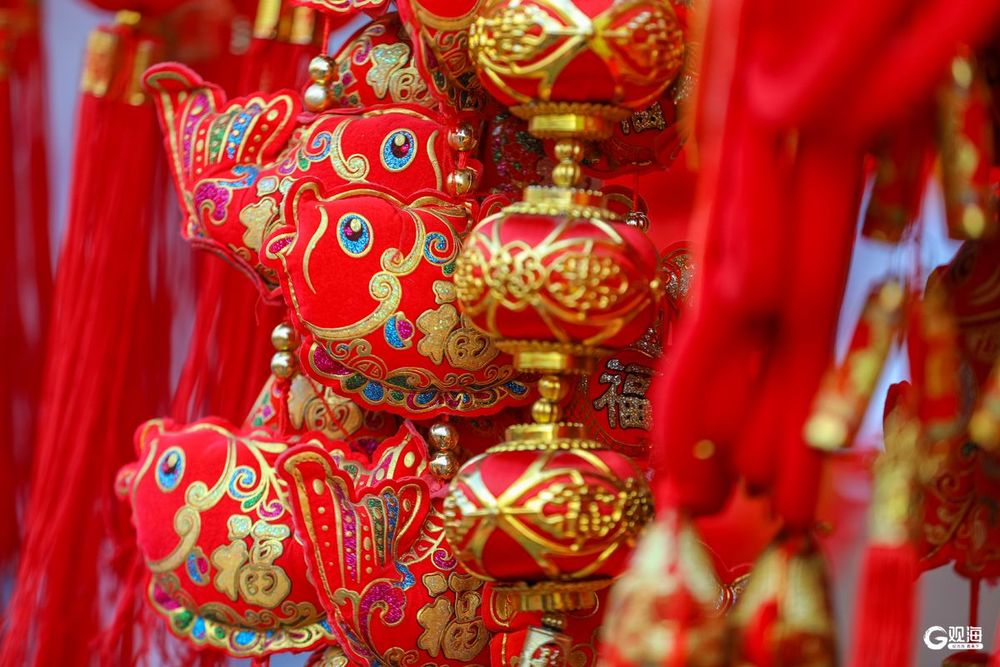 山東省青島市李滄區(qū)李村大集上的新年飾品。