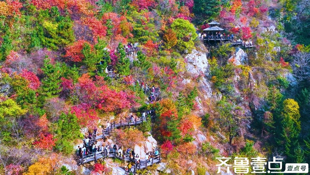 金秋時(shí)節(jié),濟(jì)南進(jìn)入紅葉季,南部山區(qū)九如山的秋日畫卷徐徐展開(kāi)。