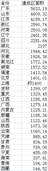 浙江建成區(qū)面積為2590平方公里,位居第四。河南位居第五,建成區(qū)面積達(dá)到了2503平方公里。浙江目前的城鎮(zhèn)化率已相對(duì)較高,而中部農(nóng)業(yè)大省河南的城鎮(zhèn)化率相對(duì)比較低,其未來(lái)城市的擴(kuò)張空間更大。此外,遼寧、四川和湖北的建成區(qū)面積也均超過(guò)了2000平方公里。