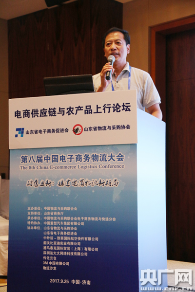 央廣網(wǎng)濟(jì)南9月25日消息(記者 劉海奎)9月25日,第八屆中國(guó)電子商務(wù)物流大會(huì)在濟(jì)南召開(kāi)。期間,山東省電子商務(wù)促進(jìn)會(huì)與山東省物流與采購(gòu)協(xié)會(huì)共同舉辦電商供應(yīng)鏈與農(nóng)產(chǎn)品上行專(zhuān)題分論壇活動(dòng)。中國(guó)物流與采購(gòu)聯(lián)合會(huì)副會(huì)長(zhǎng)兼秘書(shū)長(zhǎng)崔忠付、山東省商務(wù)廳流通業(yè)發(fā)展處處長(zhǎng)廉波、山東省電子商務(wù)促進(jìn)會(huì)秘書(shū)長(zhǎng)婁雷震、山東省物流與采購(gòu)協(xié)會(huì)執(zhí)行會(huì)長(zhǎng)王國(guó)利等領(lǐng)導(dǎo),各地政府物流、電子商務(wù)工作牽頭部門(mén)代表,相關(guān)行業(yè)協(xié)會(huì),電商、零售、物流、快遞、跨境、倉(cāng)儲(chǔ)、園區(qū)、貨代、信息化等企業(yè)代表200余人參加分論壇活動(dòng)。