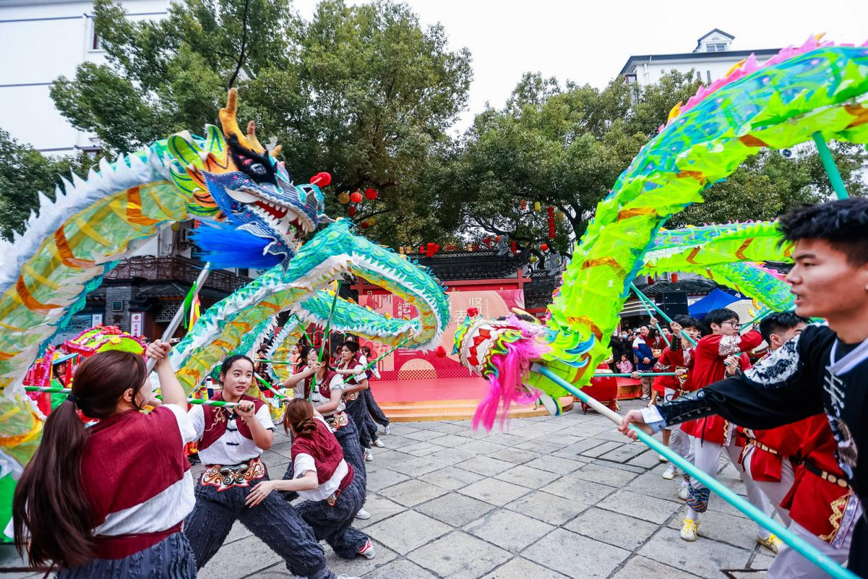 1月1日下午,奉賢青溪老街人頭攢動(dòng),“品一碗人間煙火·賢城春曉”2026奉賢新年嘉年華活動(dòng)在非遺炫彩《龍飛鳳舞》中拉開帷幕。